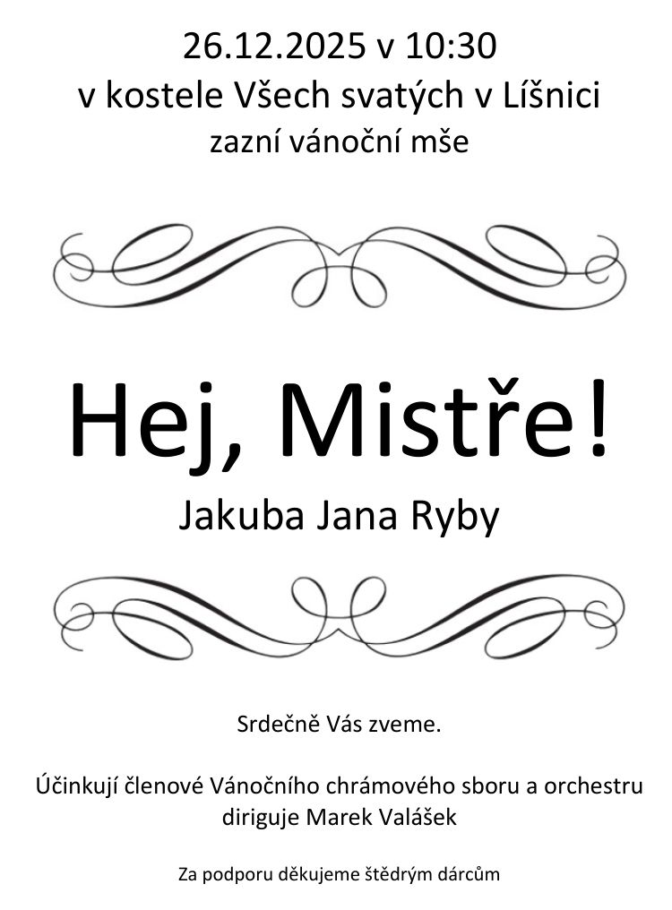 Česká mše vánoční J.J.Ryby v kostele Všech svatých v Líšnici 2025